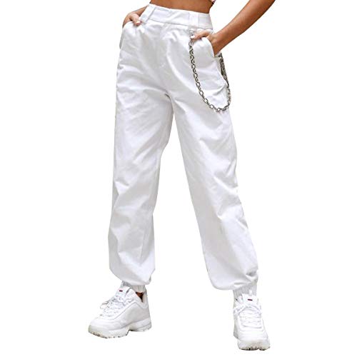 FeMereina Camo Joggers para Mujer Pantalones Cargo Slim Fit de Talle Alto con Bolsillos, Pantalones Cargo Pantalones de Chándal para Jogging de Baile (Blanco, M)